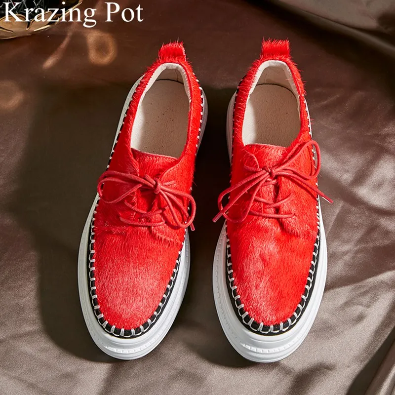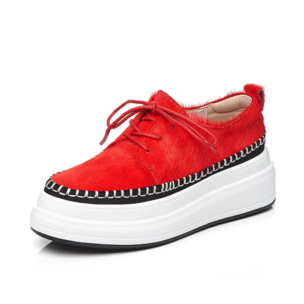2019 brand spring shoes fur lace up casual loafer round toe sneaker elegant wedge increasing platfo