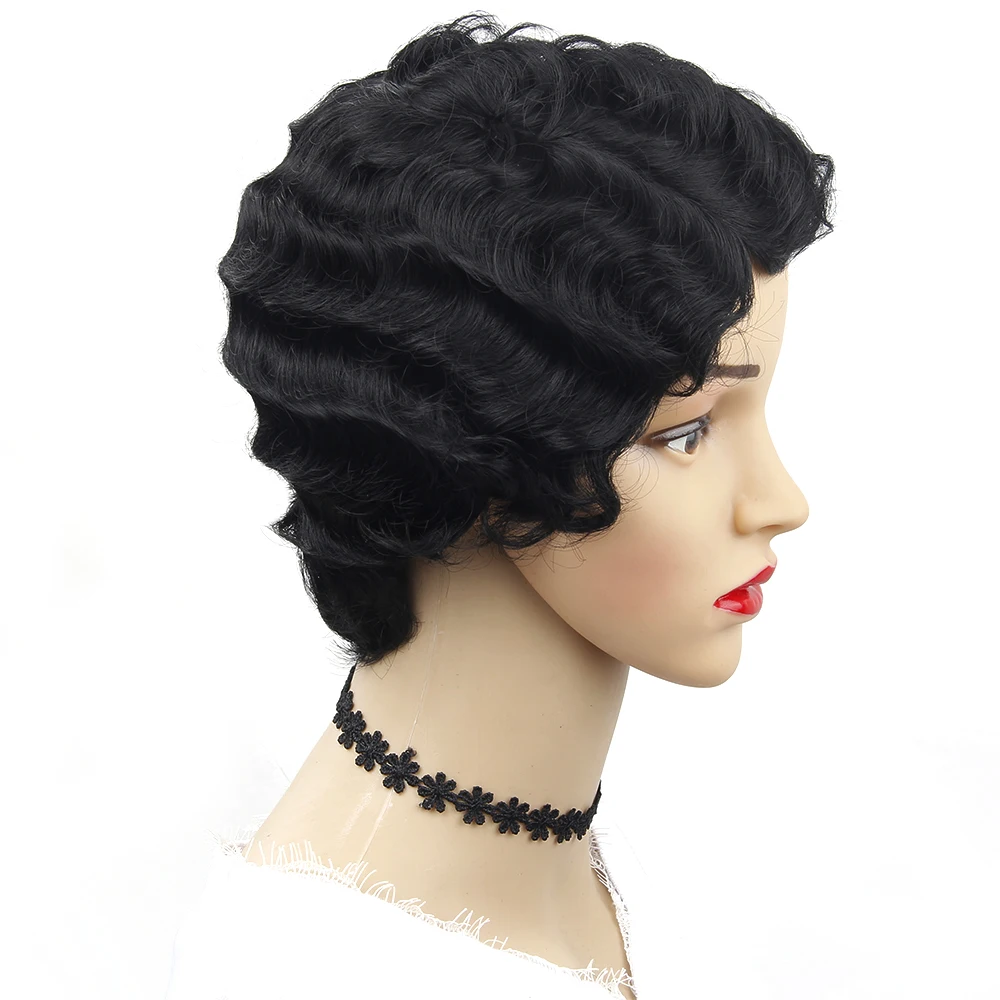 Short Curly Wigs for Black Women Retro Wig Female Synthetic Hair Finger Wave Wig Cosplay