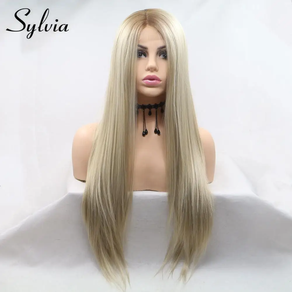 Sylvia Wig U Part Lace Front Blonde Wig Heat Resistant Hair Ombre Synthetic Straight Wig Brown Root