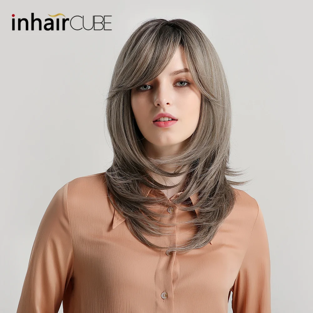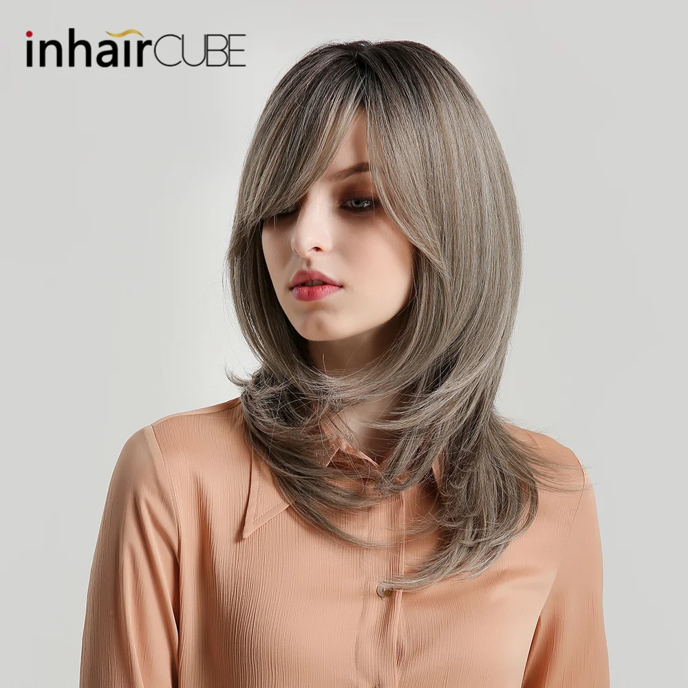 BEST QUALITY Inhaircube 18" Long Straight Natural Lolita Wigs for Black Women Synthetic Half Wig with Bangs Ombr