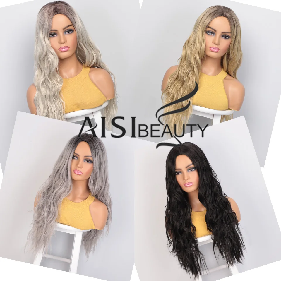 ORIGINAL AISI BEAUTY Long Womens Wigs Ombre Platinum Blonde Wigs Heat Resistant Part Side Synthetic Wavy Wig