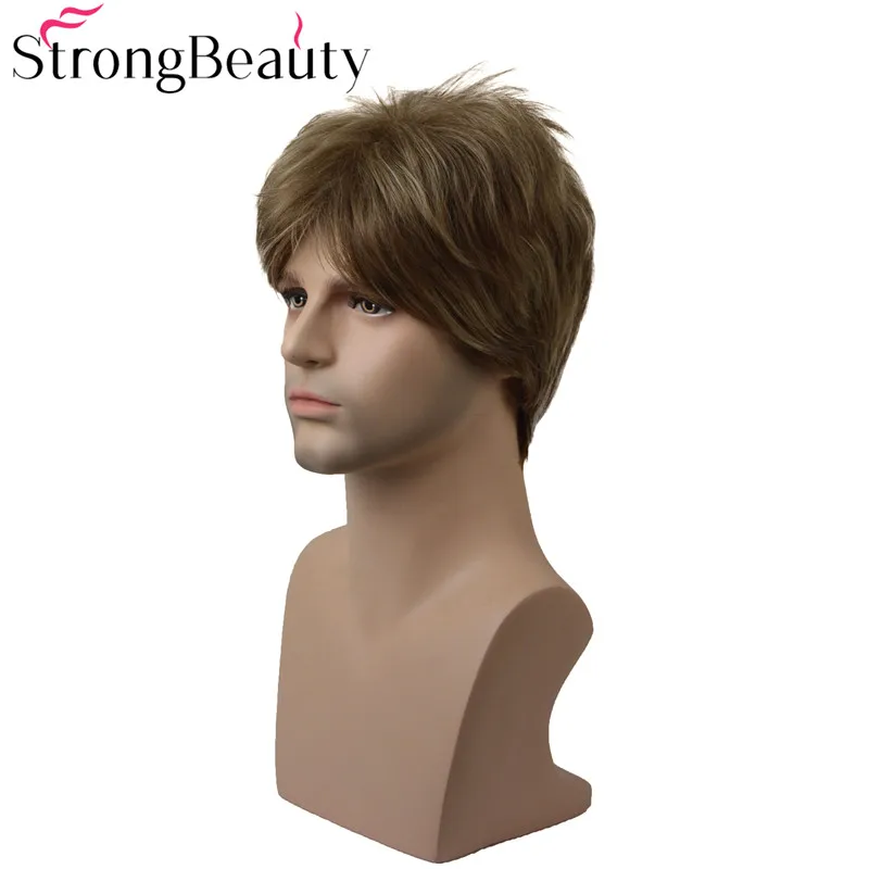 Best Quality StrongBeauty Short Mens Wig Straight Blonde/Brown Synthetic Wig Male Hiar Heat Resistant Capless Wi