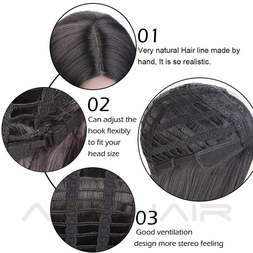 Review AISI HAIR Long Straight Black Wig Synthetic Wigs for Women Natural Middle Part Lace Wig Heat Resist