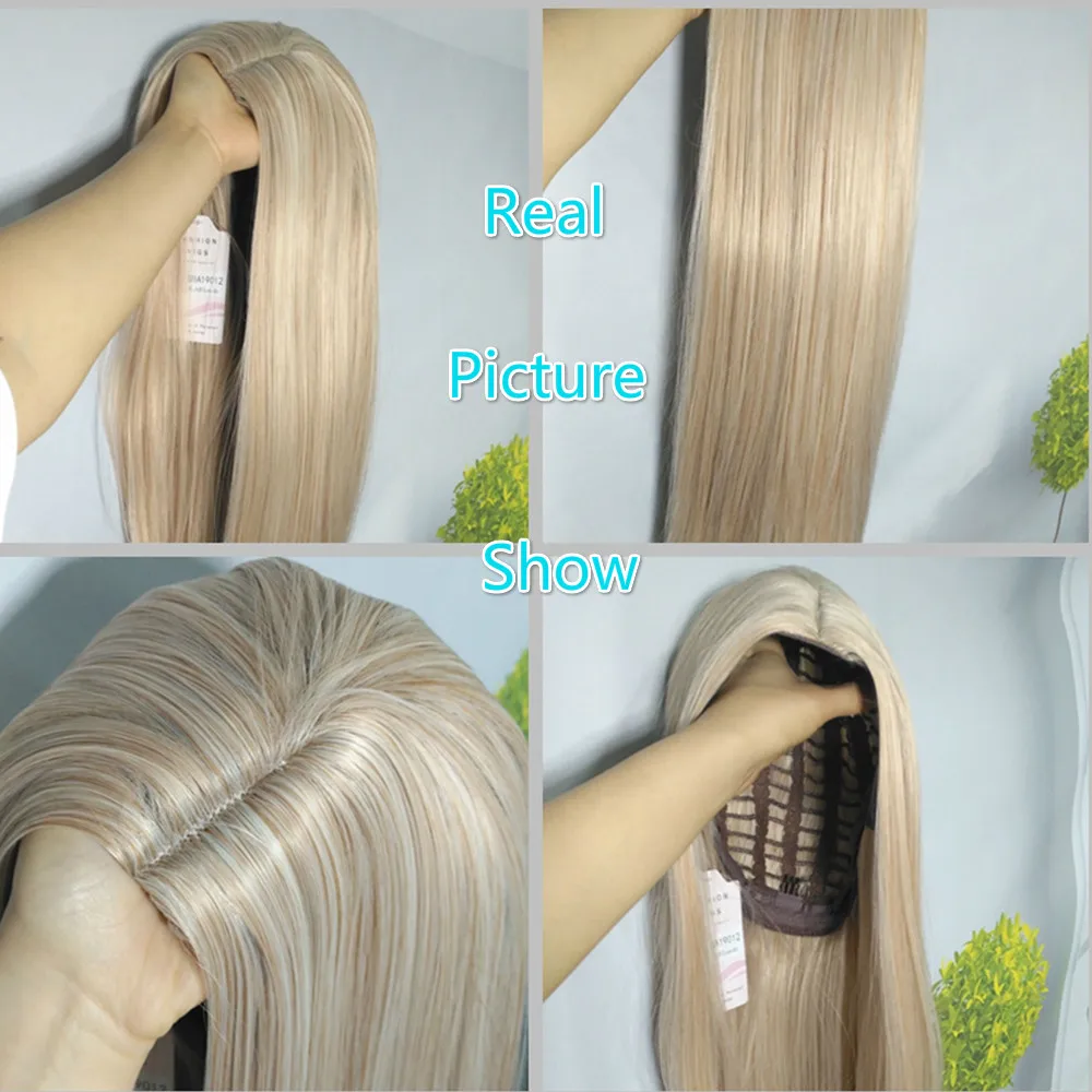 FAVE Long Straight Pure Light Brown Blonde Long Synthetic Wigs for White /Black Women 22 Inch Middl