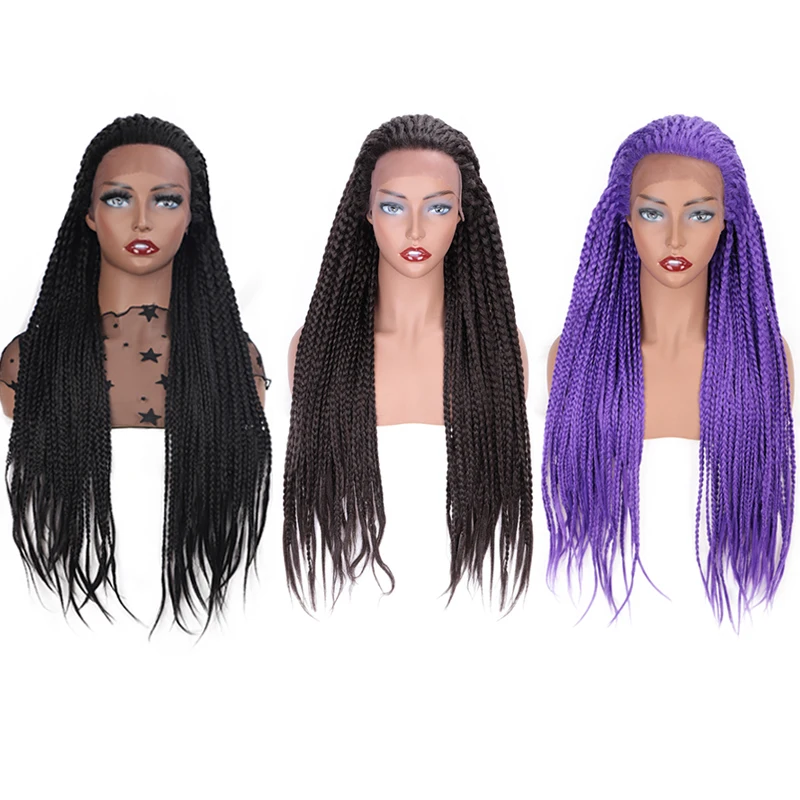 TOP ELEGANT MUSES Lace Front Wig Synthetic Purple 66cm Long Box Braid Wig Purple Glueless Braided For A