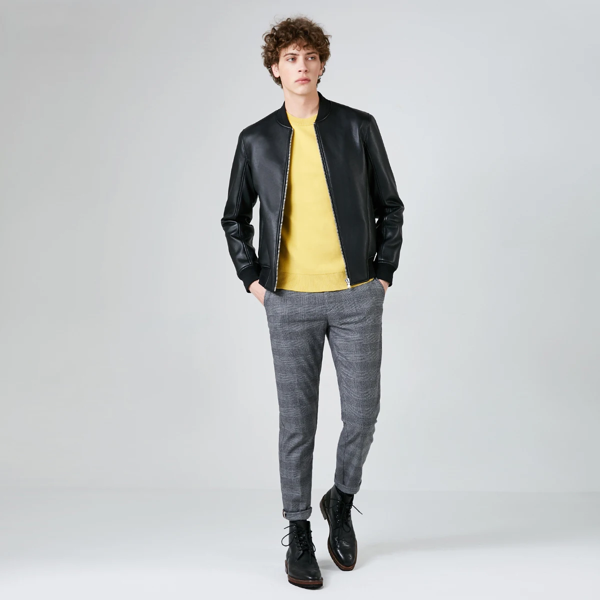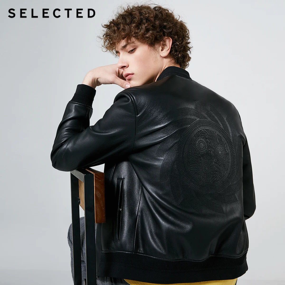 SELECTED Mens Artificial Leather PU Baseball Collar Jacket 4191P3501