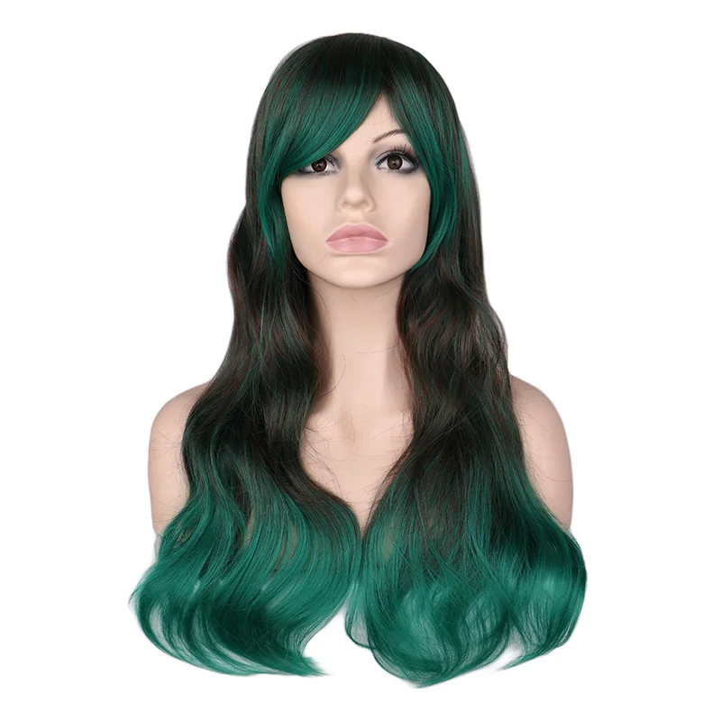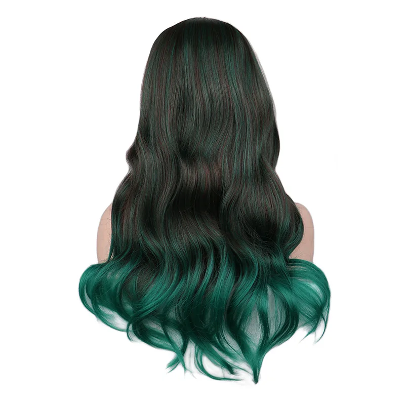 QQXCAIW Women Long Wavy Cosplay Mixed Black To Green Ombre 68 Cm Synthetic Hair Wigs