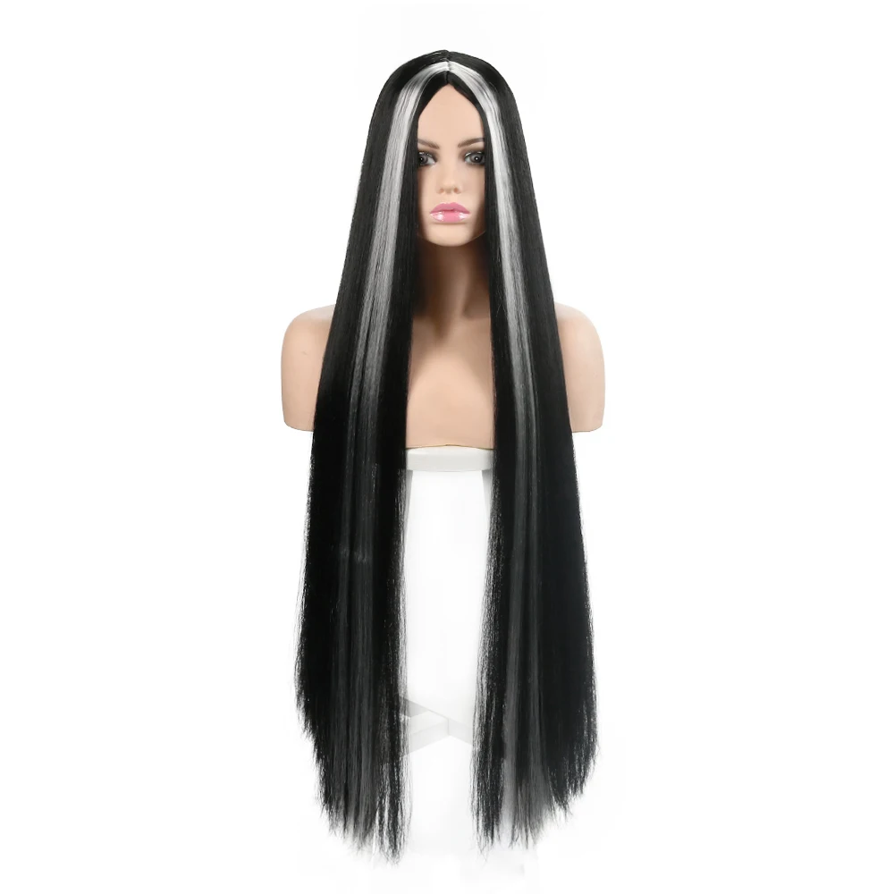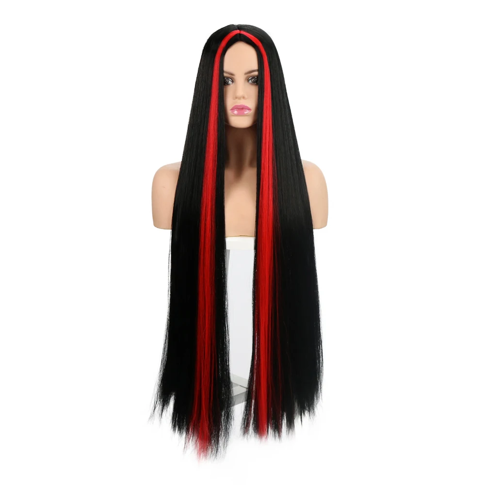 Synthetic Straight Red Black White Purple Witch Cosplay Wigs for Women Halloween Party Heat Resista