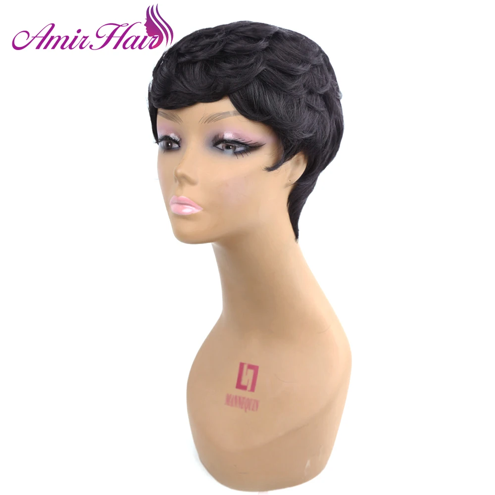 Amir Short Wigs for American Women Black Short Synthetic Wig Cosplay Perruque Short Curly Hair Wig