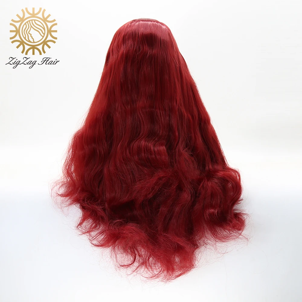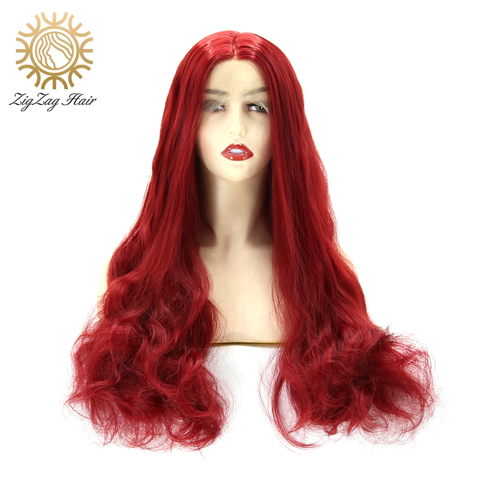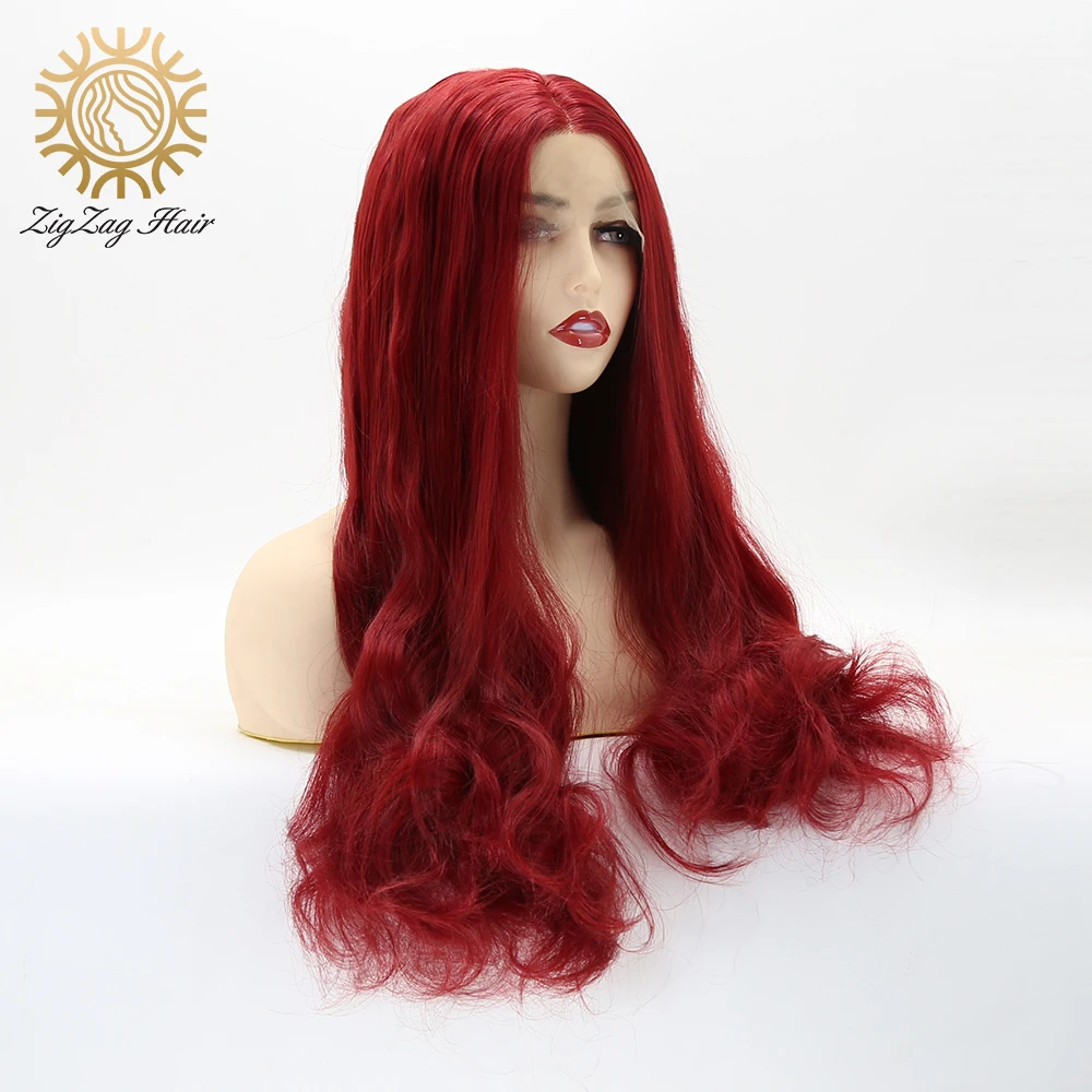 Hot Sale ZigZag Natural Long Burgundy Hair Glueless Synthetic Lace Front Wigs for Women Loose Wave Lace Wigs