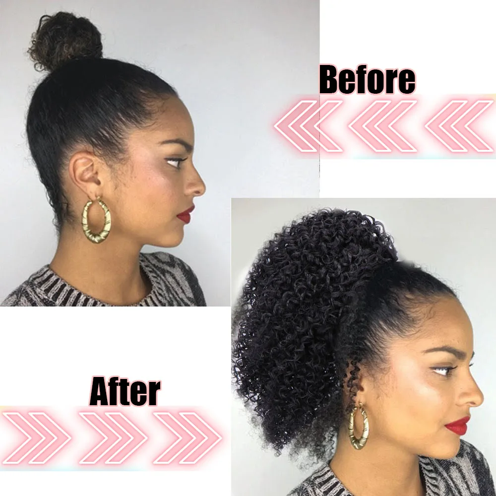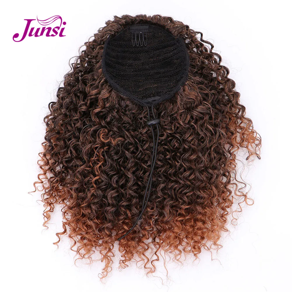 REVIEW TOP SELLER JUNSI Afro Short Curly Drawstring Ponytail Synthetic Ponytail Hair Extensions for Women