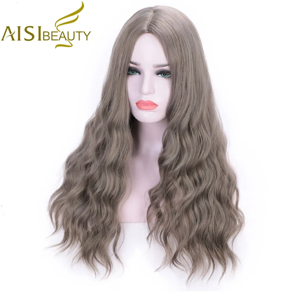 AISI BEAUTY Synthetic Long Wavy Wigs for Women Brown Grey Black Heat Resistant Natural Cosplay Cute