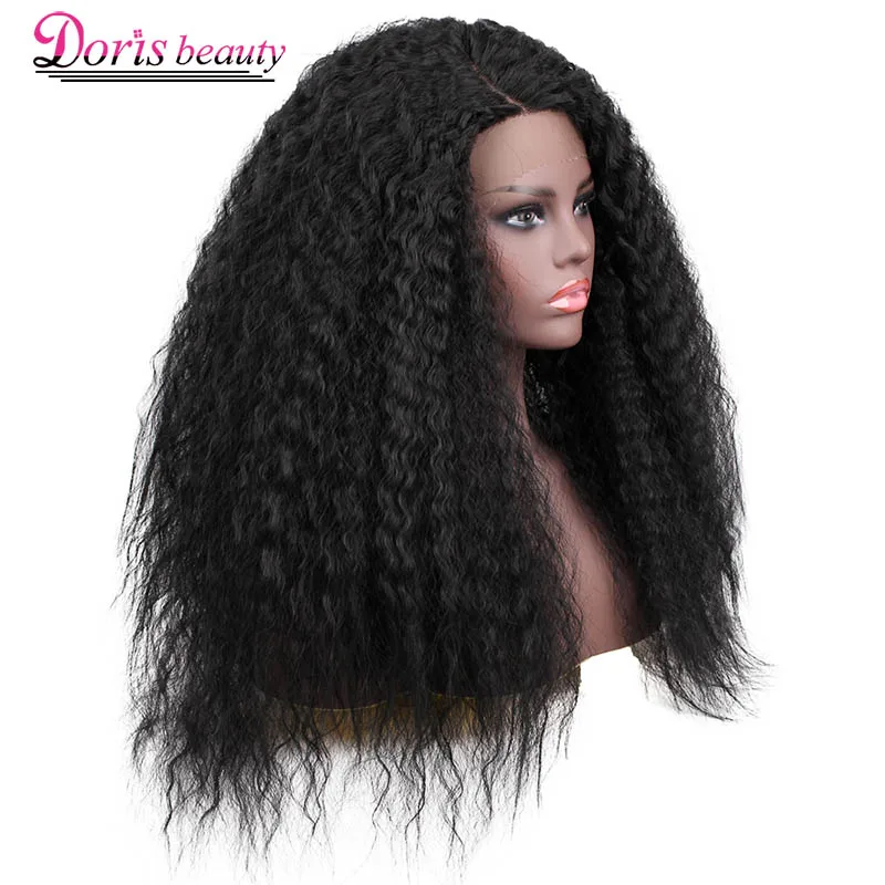 Best Seller Doris beauty 16 Inches Synthetic Lace Front Wig Long Afro Kinky Curly Wig Black Wigs for Women