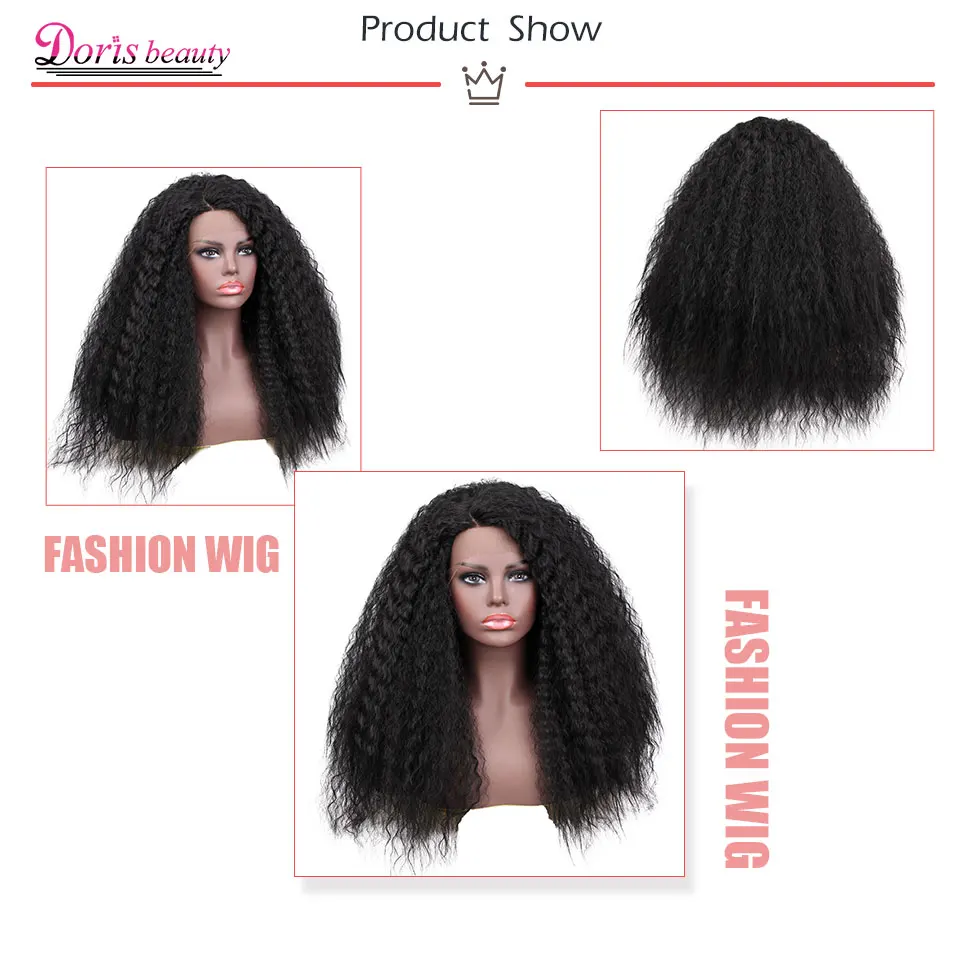 Doris beauty 16 Inches Synthetic Lace Front Wig Long Afro Kinky Curly Wig Black Wigs for Women